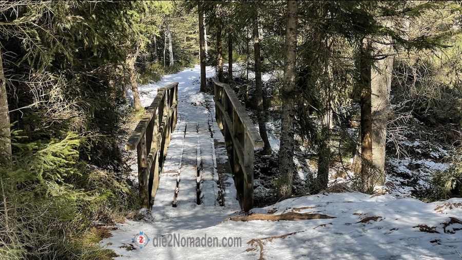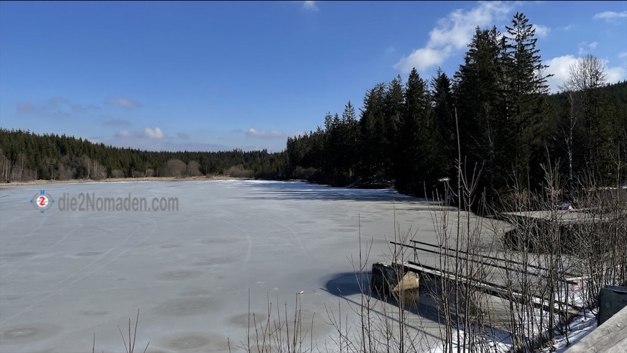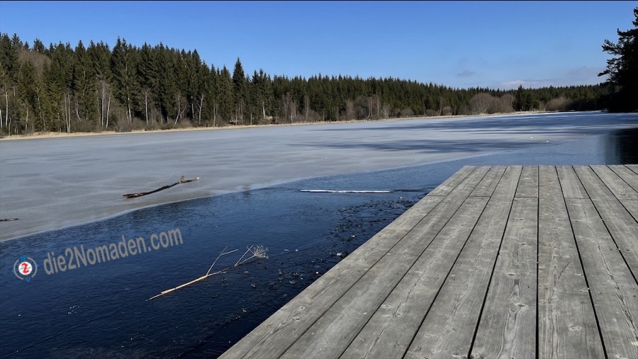 Wir nutzen einen kalten, aber wunderschönen Tag und machen uns auf ins Obere Mühlviertel. Der Weg führt uns über Bad Zell, wir lassen Unterweißenbach hinter uns, biegen in Geierschlag rechts ab zum Rubner Teich und parken direkt am Parkplatz beim Teich, der im Sommer auch den Badegästen als Moorbadesee dient.
