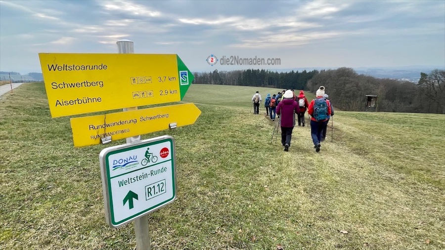 Wir erreichen den Ortsteil Luna, wenden uns am Ortsende Richtung Süden und folgen der asphaltierten Straße. Nach dem 2. großen Bauernhof leitet uns die Beschilderung „Weltstoarunde“ rechts über einen Wiesenweg wieder hinunter nach Schwertberg.