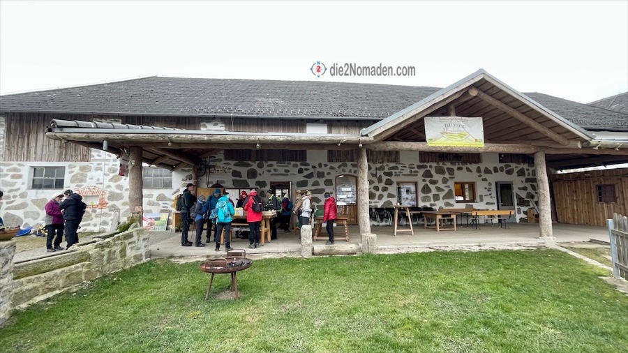 Gut gelaunt … und schon etwas hungrig … werden die Wanderstöcke vor dem Eingang abgestellt, die Schuhe grob abgeklopft und schon werden die Tische von uns in Beschlag genommen.