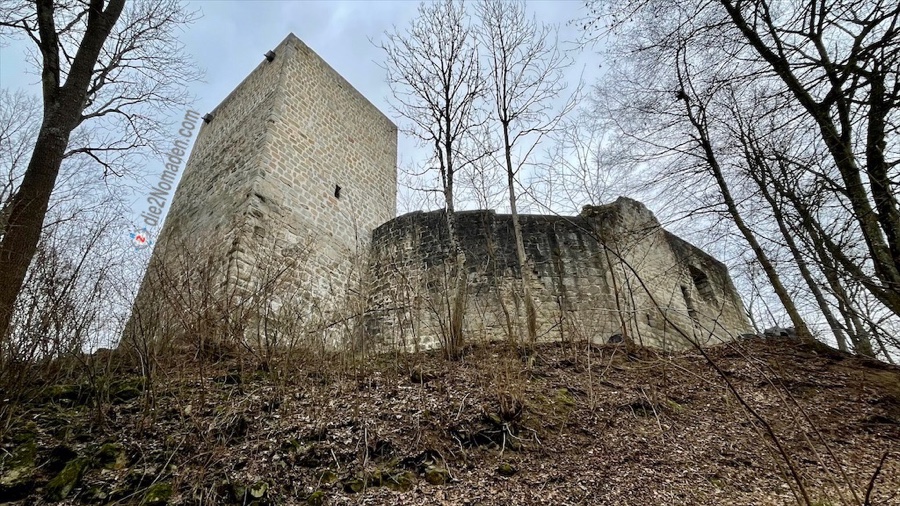 Diese Ruine ist Teil einer Höhenburg, bei der die Hauptburg etwa 1.000 m2 groß war. Sie wurde im damals eher seltenen Baustil der Buckelquaderbaus errichtet.