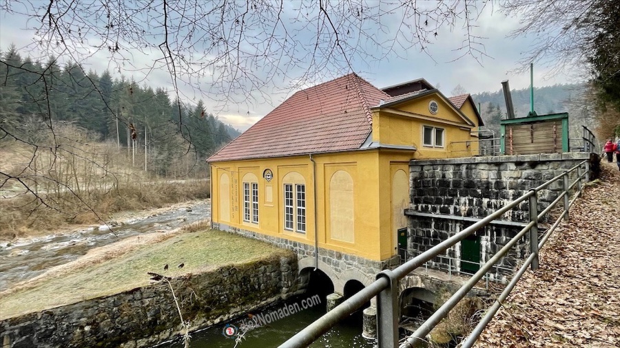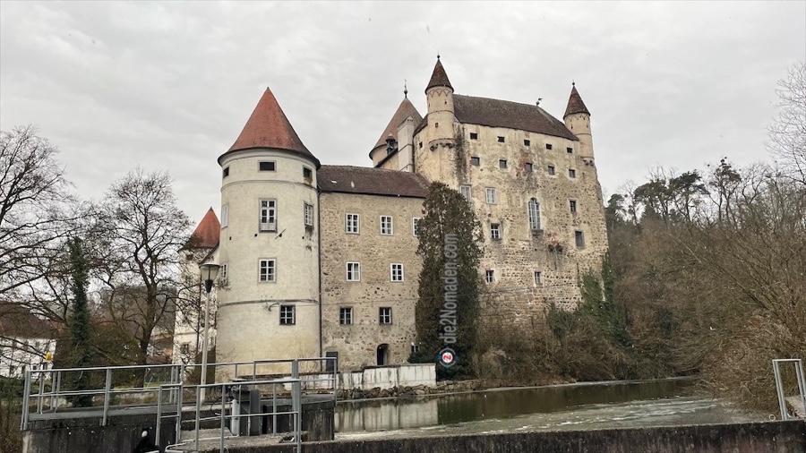 Wir wandern entlang des gemeinsamen Flussbettes von Wald- und Feldaist, vorbei an einem der drei Aistkraftwerke der Karton- und Pappenfabrik Merckens, bevor wir wieder auf Höhe der Papierfabrik in den Wald Richtung Ruine Windegg eintauchen.