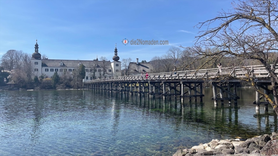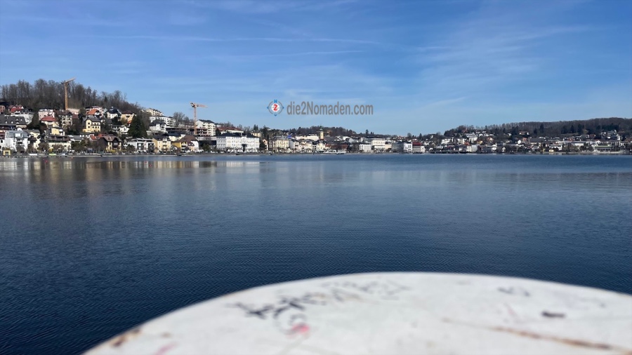 Da wir diesen wunderschönen Tag noch ein wenig ausnutzen wollen, parken wir unser Auto auf der Promenade, neben der bekannten Konditorei Baumgartner. Einen Kaffee und ein Stück Torte später starten wir einen gemütlichen Spaziergang entlang der Promenade zum weltbekannten Schloss Ort.
