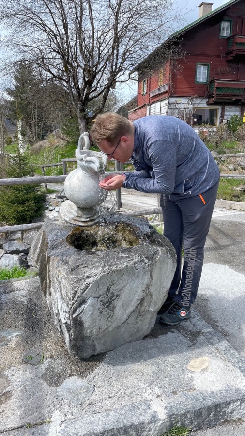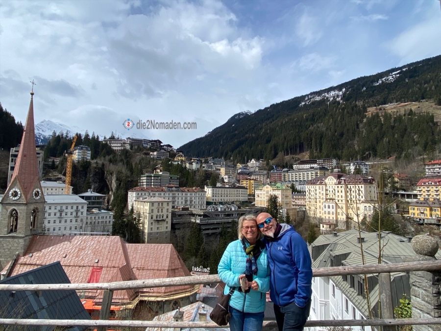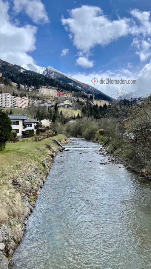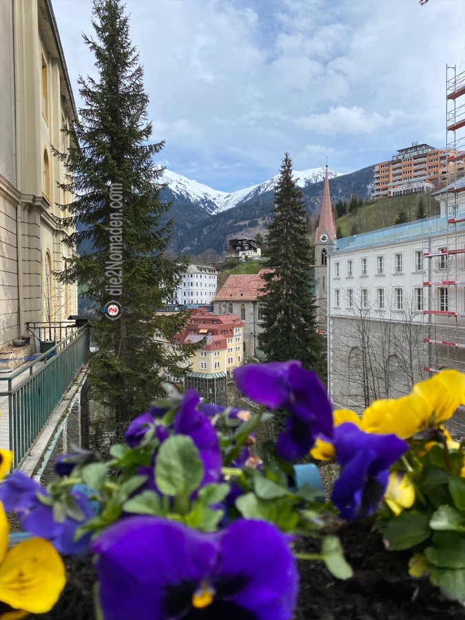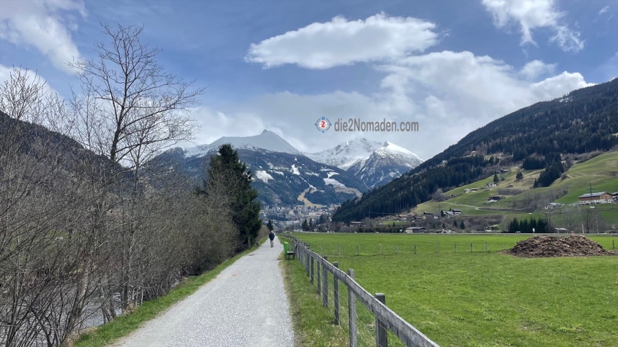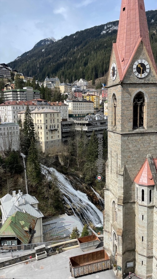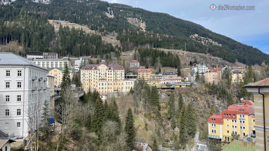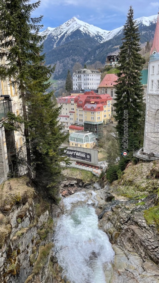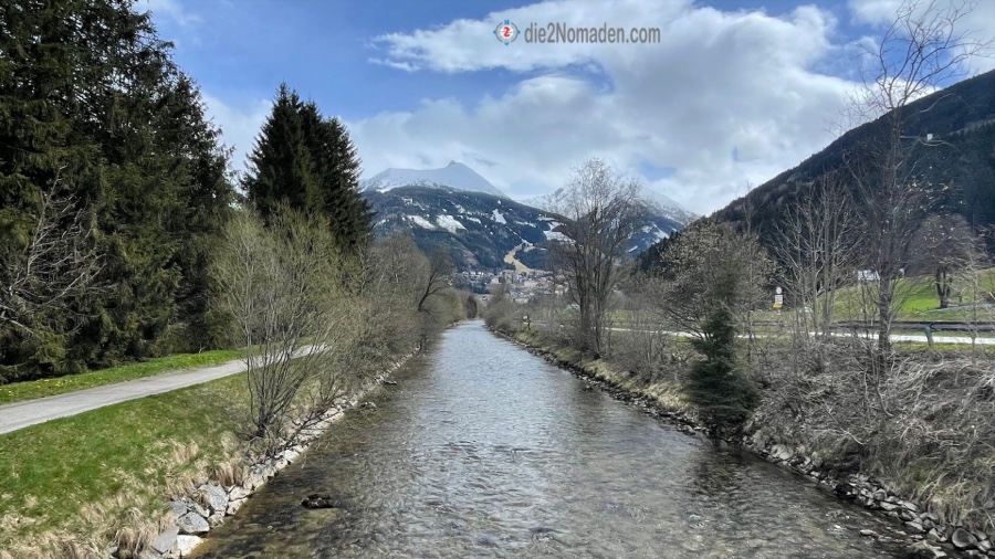 Zu einer kann er uns auch überreden und wir schnüren unsere Wanderschuhe und marschieren vom Ort Bad Hofgastein immer entlang der Gasteiner Ache beziehungsweise der Achenpromenade Richtung Bad Gastein. Der Tag ist zwar sehr windig, aber zumindest regnet es nicht und ab und zu blinzelt die Sonne hervor. Die Berge mit ihren frisch angeschneiten Spitzen glitzern und im Tal grünt es schon. Und so wandern wir auf dieser begehrten Läufer- und Walkerstrecke dahin, bis wir Bad Gastein erreichen. Und wer Bad Gastein kennt, weiß, dass die Straßen und Gässchen allesamt bergan führen – hinauf in den Ort.