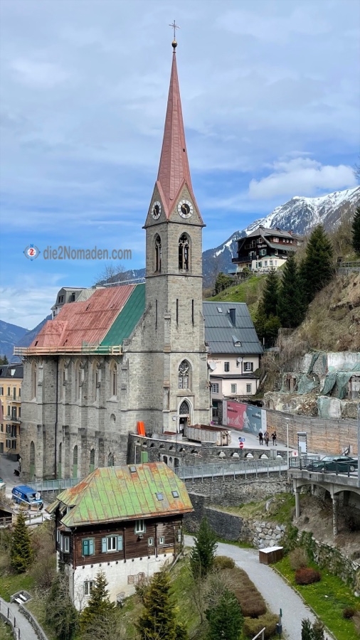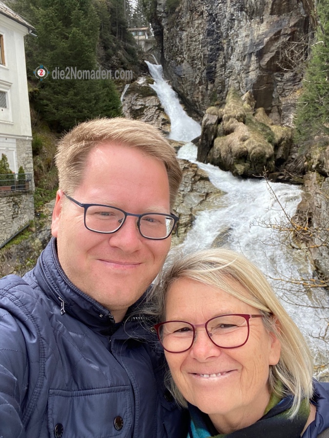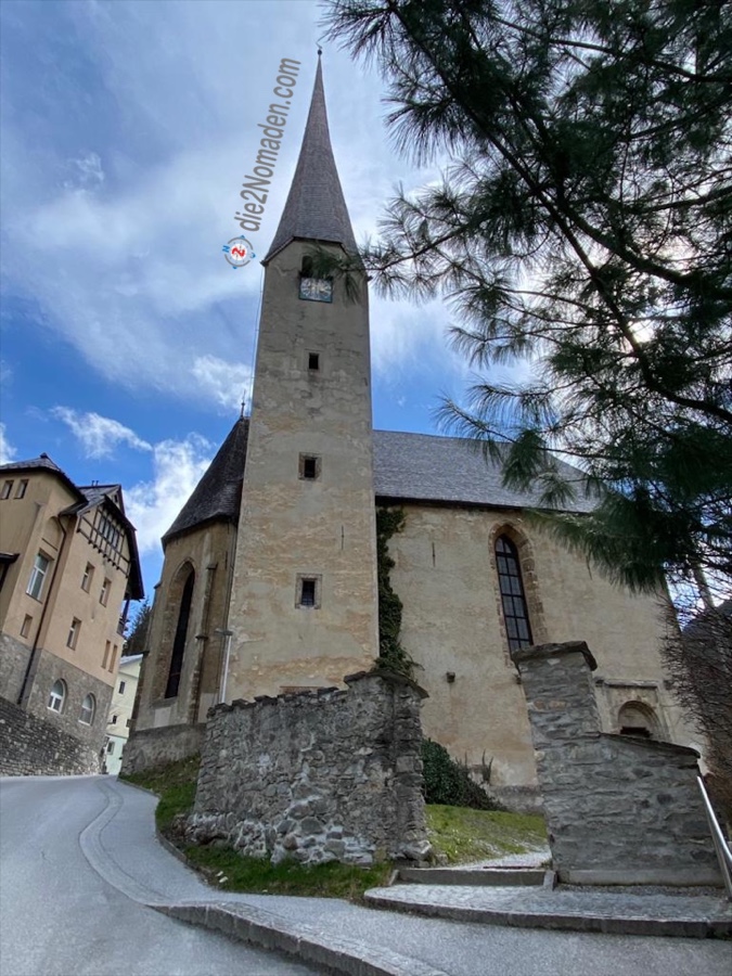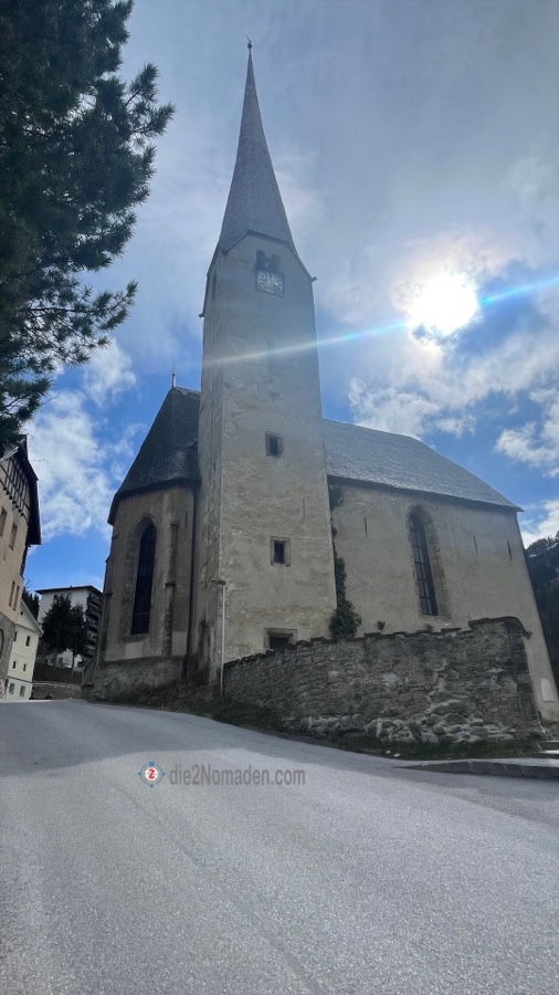 Wir suchen erst den Aussichtspunkt des Wasserfalls, doch leider ist dieser noch nicht begehbar, da gesperrt aufgrund Steinschlags. Pech gehabt und so suchen wir einen Wald- und Wiesenweg hinauf und erreichen schließlich – meinereiner außer Atem, da Spray natürlich nicht mit – die Kirche.