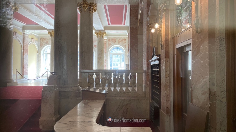Damals war es noch ein Casino, soweit ich mich erinnern kann. Heute ist das Betreten aus Sicherheitsgründen verboten. Wir haben nur durch die Scheiben gespäht und fühlten uns sofort zurückversetzt in Zeiten der Kaiserin Elisabeth, die damals sicher schöne Tage in Bad Gastein verbrachte. Ein Stück des Höhenweges beschert uns schöne Blicke zurück auf Gastein und auch hier stehen wir kopfschüttelnd da und fragen uns, welcher Architekt dieses absolut scheußliche Einkaufscenter, diesen Betonklotz, der heute nicht mehr betreten werden darf, mitten hinein in den Ort mit den damals schönen Häusern pflanzte.