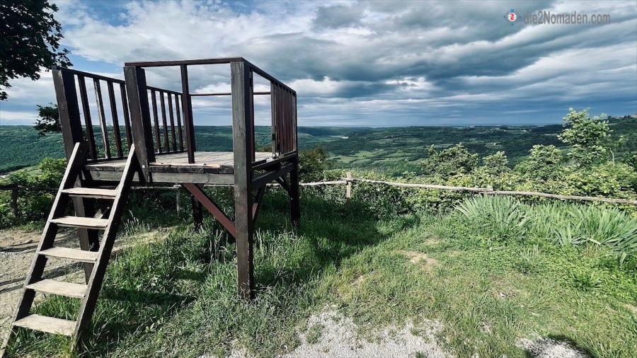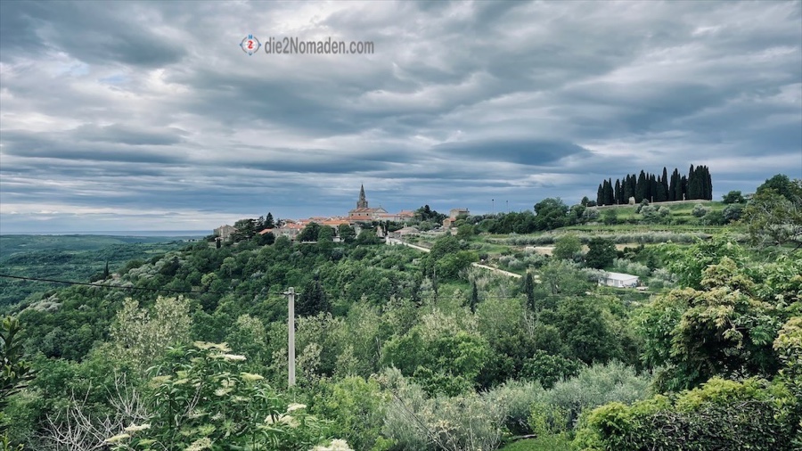 Das Örtchen liegt etwa 5 km vor Motovun und bietet an dessen Rande, einige Meter abseits der Strecke, ein perfektes Lokal für uns.