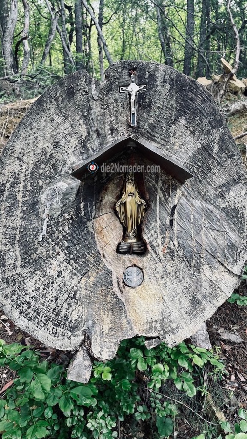 Von dort geht es für uns rechts weg. Der Weg heute schlängelt sich quer durchs Hinterland, um die Täler zu umfahren.