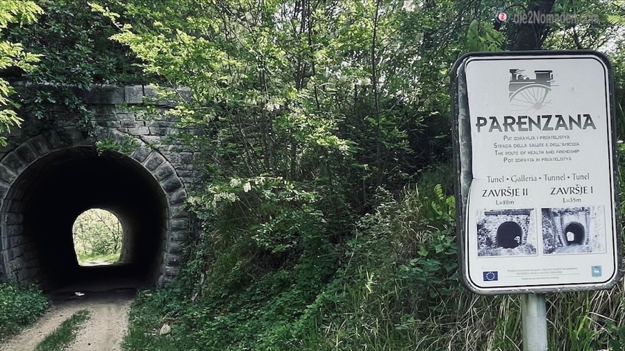 Die Parenzana wurde so in den Berg gebaut, dass die Strecke in mehreren Schleifen und Biegungen entlang der Taleinschnitte verläuft und man nach damaligen Möglichkeiten mit wenigen Tunnel auskam.