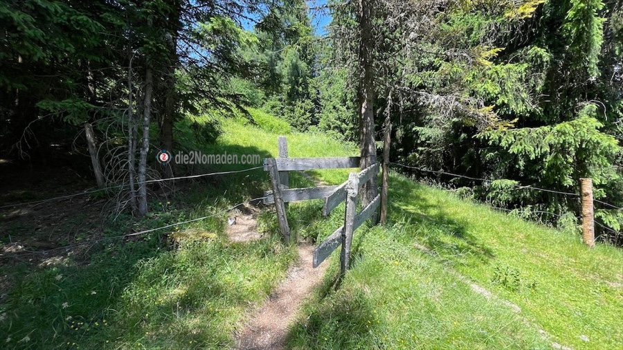 Zu beachten ist jedoch, dass die Weidegatter für Wanderer konzipiert und daher sehr eng sind und das Bike über den Zaun gehoben werden muss.