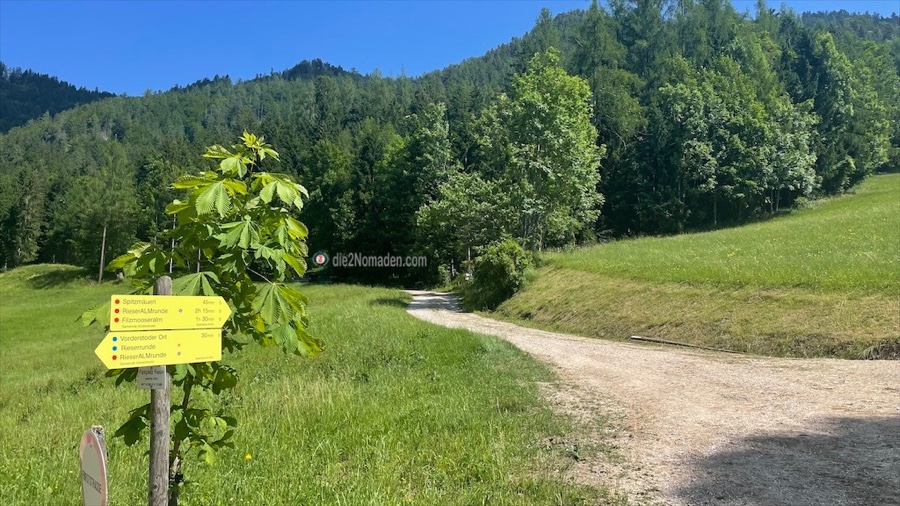 Auch hier queren wir eine Forststraße und erreichen etwa 20 min. später die erste Häuser und den Güterweg Voderramseben, den wir bis zu unserem Parkplatz folgen.
