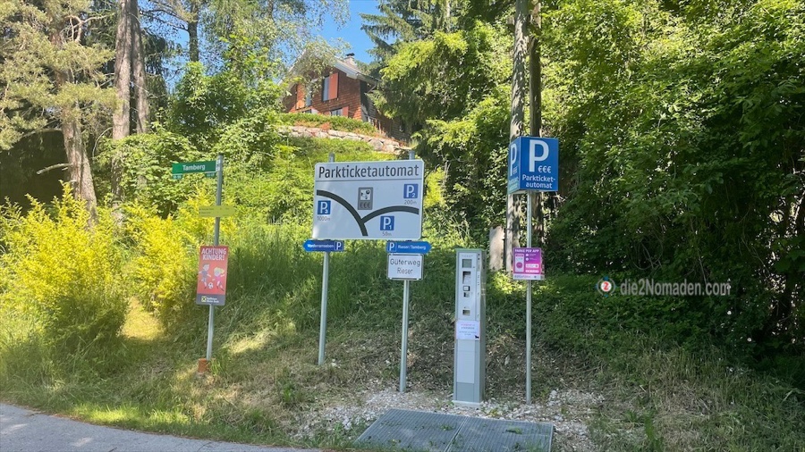 Am Kreuzungspunkt Ramseben und dem Güterweg Rieser steht ein Parkautomat, der von uns € 3,00 für 4 Std. Parkzeit bekam. Es stehen 3 Parkplatze, welche auf einer großen Tafel gekennzeichnet sind, zur Verfügung.