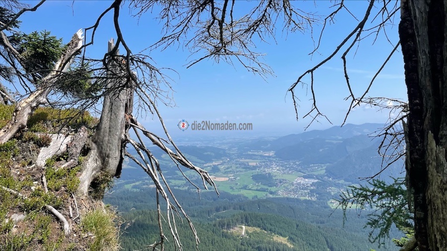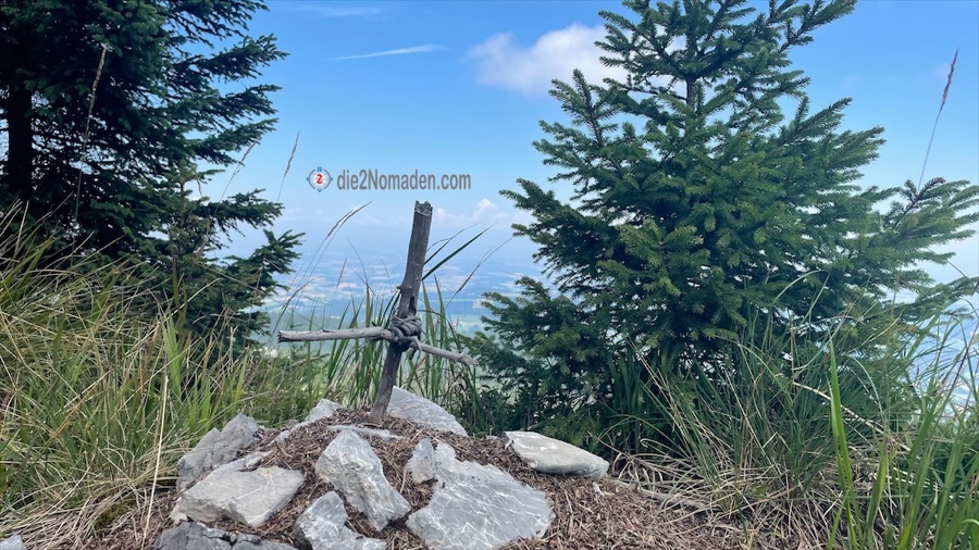 Hier heroben beginnt eine wunderschöne Wanderung am Grat entlang mit herrlichen Aussichten ins Almtal und weit hinaus in den oberösterreichischen Zentralraum. Weitere 150 hm später erreichen wir den eher unbekannten Durchgangskogel. Ein unscheinbares kleines Kreuz erwartet uns hier heroben.