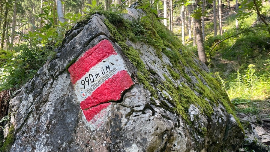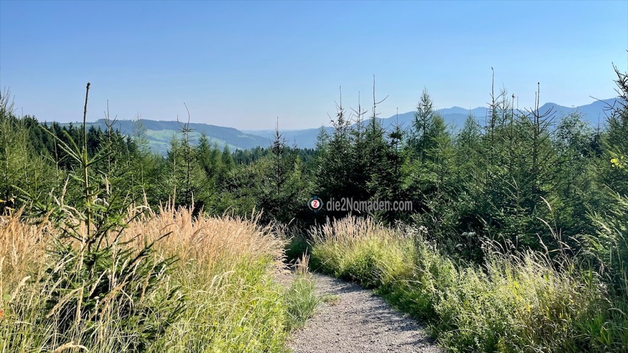 Anfangs geht es für ein kurzes Stück entlang einer Forststraße, die wir linksseitig auf einem Wanderweg verlassen. Vorbei an wilden „Bienenwiesen“, in denen es summt und brummt, geht es stetig höher.