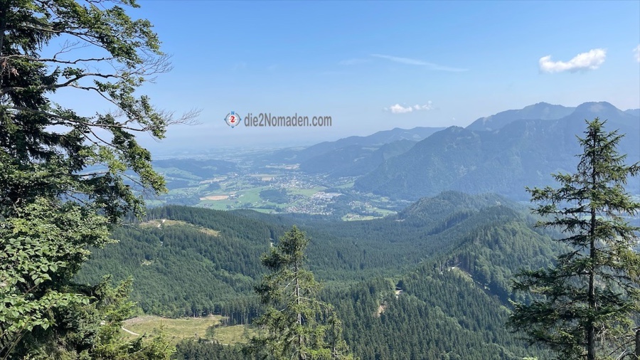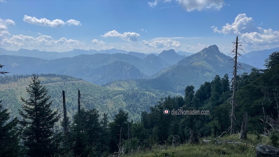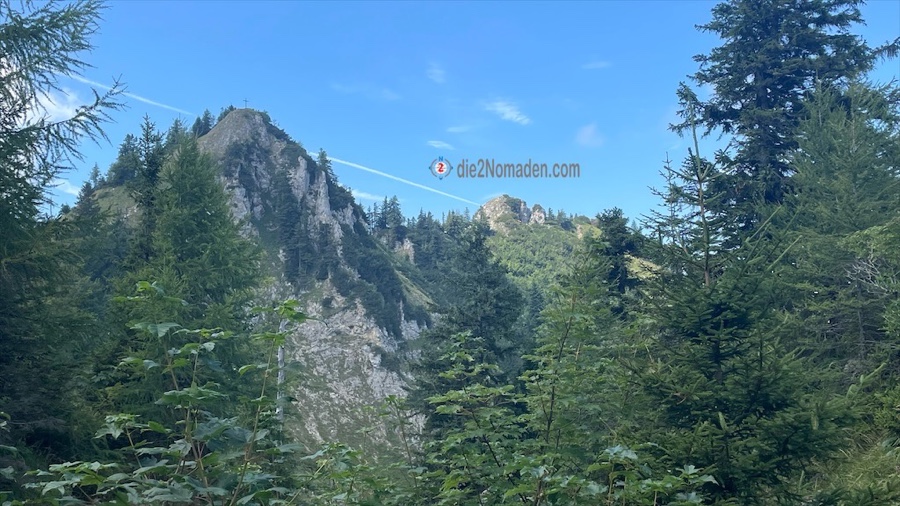 Wir bestaunen noch den Blick über den Gebirgszug rüber zum Trapez, Jacksonstein und zum Steineck, das heute sehr gut besucht ist – allerdings von der anderen Seite.
