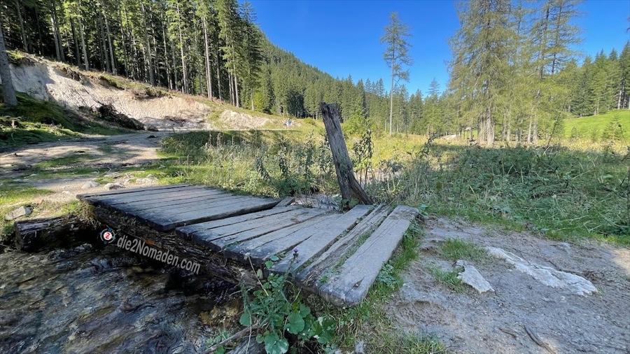 Kurze Zeit später erreichen wir schon die um einiges größere Stefansbergalm, eine wunderschöne Almhütte, die auch für größere Feiern gemietet werden kann. Einige Male queren wir den kristallklaren Goslitzbach.