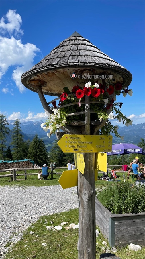 SPITAL/PYHRN. Da wir, wie schon so oft, die Entscheidung zu einer Wanderung erst beim Frühstück treffen und daher relativ spät dran sind, lassen die parkenden Autos entlang der Straße vom Singerskogel bis zum sehr gut gefüllten Parkplatz auf einigen Betrieb auf der Gowilalm vermuten. Wer zu spät kommt, … Nun ja, ist halt so.