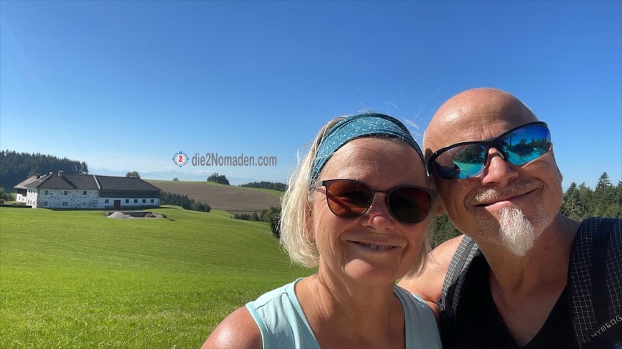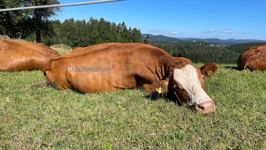 Weiter führt uns der Wanderweg über saftige Wiesen, vorbei an wunderschön gepflegte Bauerngärten, an hofeigenen Kapellen (manche würde man schon eher als kleine Kirche bezeichnen 🤪) und sanft und friedlich ruhenden Kühen auf ihren Weiden. Wir kommen an mehreren Steinbloßhöfen, den inoffiziellen Wahrzeichen des Mühlviertels, vorbei und lassen die Weite der Natur auf uns wirken.