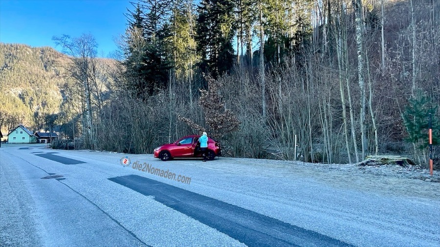Wir verstauen unsere sieben Sachen und verlassen den Parkplatz.