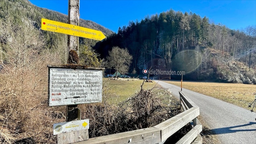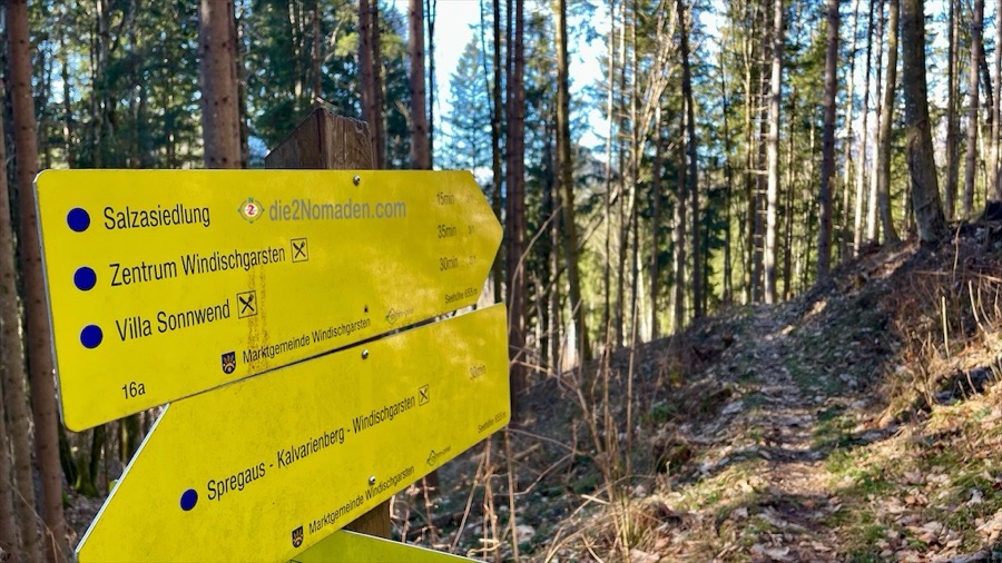 Mitten in Windischgarsten, an der Salzastraße, parken wir unser Auto, schnüren unsere Wanderschuhe, starten unsere GPS-Uhren und wandern los, die Salzastraße entlang Richtung Mayrwinkl.