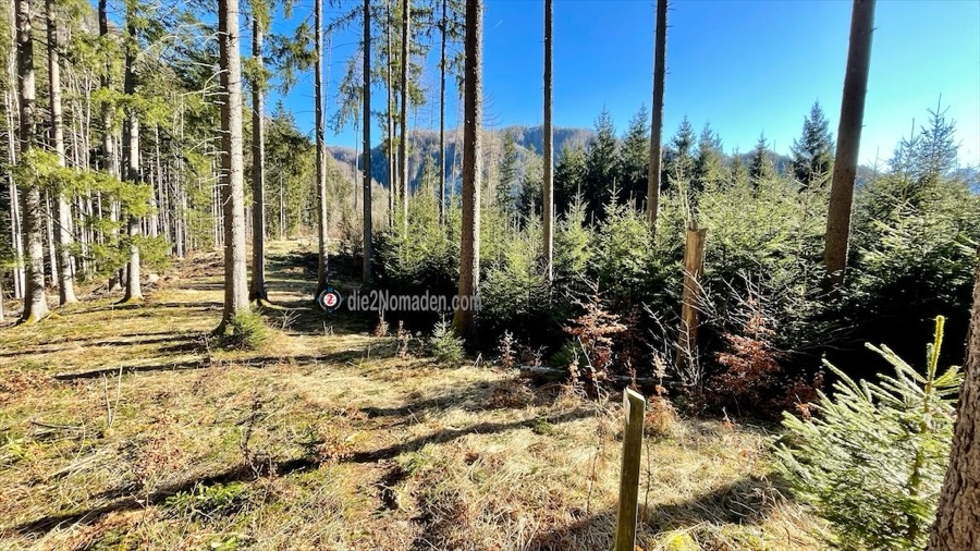 Nun führt der Weg auf der Sonnenseite des Bergrückens entlang weiter über kleine Brückerl und schmale Steige. Ein weiterer, etwas jüngerer Windbruch zwingt den Weg nach rechts. Nach einem kurzen Abstieg queren wir den Salzabach und erreichen das Jagdhaus „Salzahütte“ .