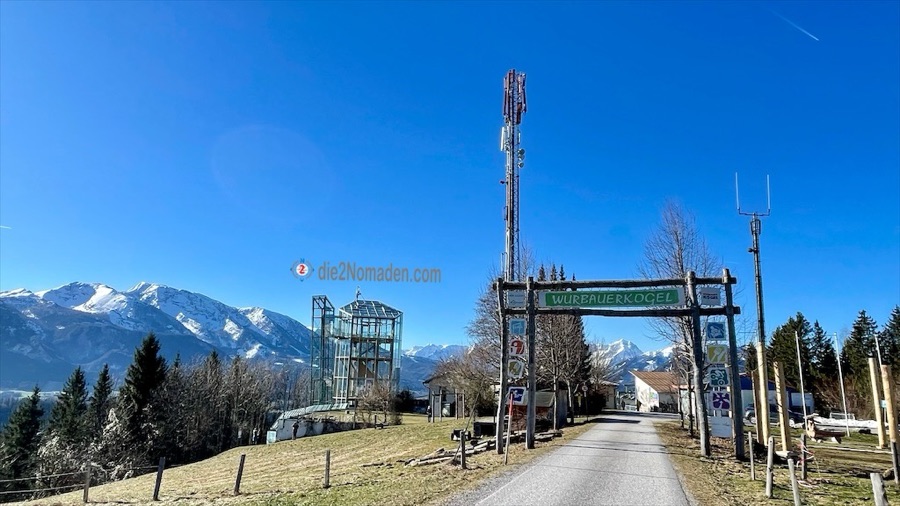 Es vergeht einige Zeit, bevor wir uns wieder aufraffen und die letzten Meter auf der Asphaltstraße zum Panoramaturm des Wurbauerkogels erwandern.