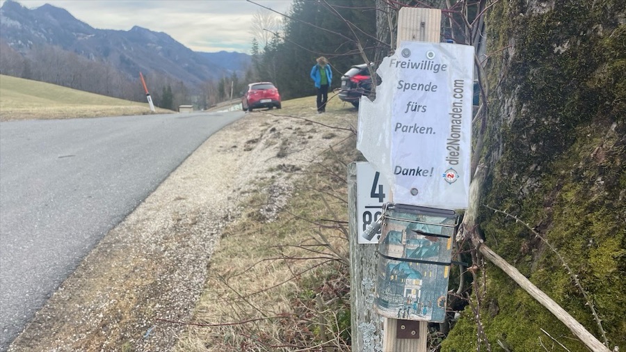 Der Landwirt hat neben seinem Stadl gegen eine freiwillige Spende die Möglichkeit geschaffen, dass man hier parken und so ganz entspannt wandern gehen kann.