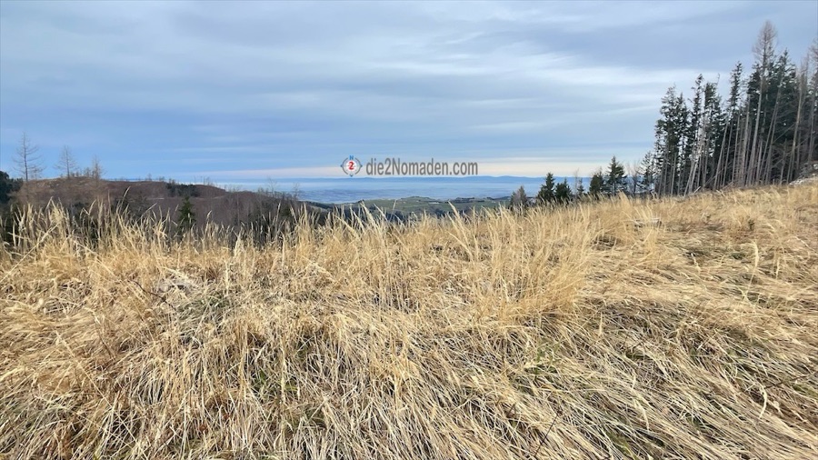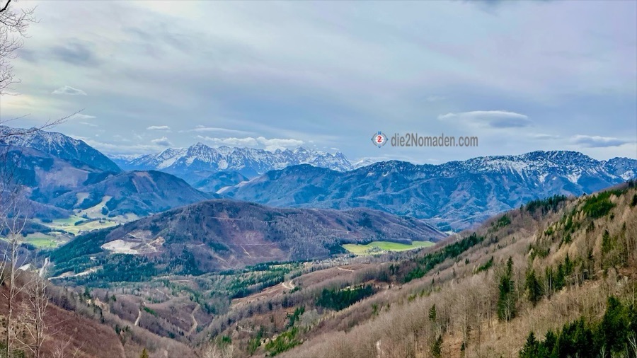 Nun folgen wir dem Höhenrücken hoch Richtung Steinmühlen auf 1099m. Der Weg führt durch wilden Waldwuchs, lange Gräser und entlang steiler Felskanten. Es gibt immer wieder mal traumhafte Ausblicke bzw. Fotospots.