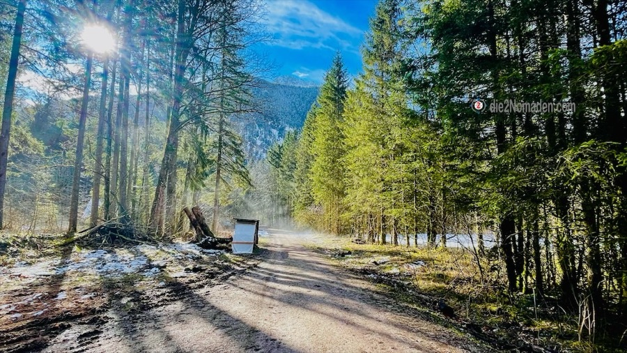 Auf Höhe des Parkplatzes wenden wir uns nun dem Norden zu und erreichen kurze Zeit später die Langbathsee-Straße. Schräg gegenüber befindet sich unser Jagerbachl-Parkplatz.