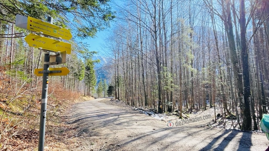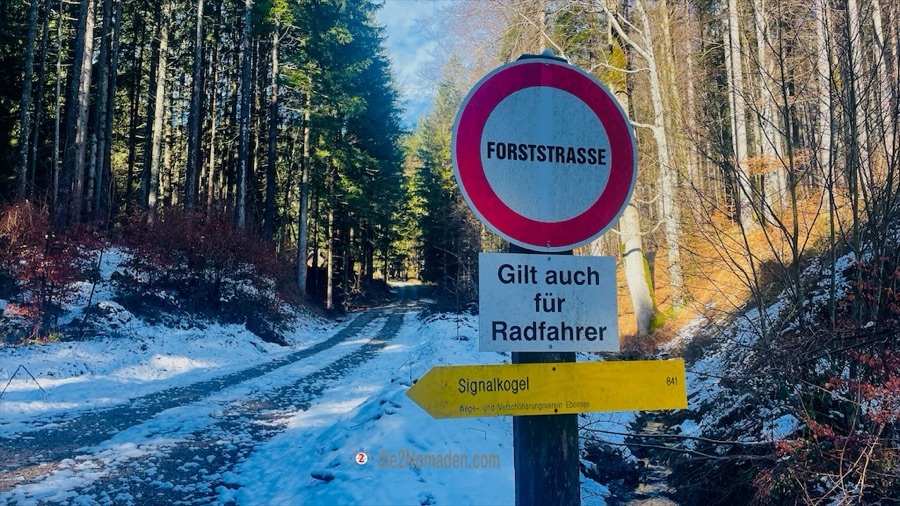 Aber hier von Beginn an: Auf dem Weg zum Langbathsee parken wir zirka 7 km nach Ebensee auf einem kleinen Parkplatz an der Jagerbachlstube. Der Parkplatz ist zwar schon gut besucht, trotzdem gibt es für unser Gefährt noch einen Stellplatz. Schon hier ist der Signalkogel auf Wegweisern markiert.