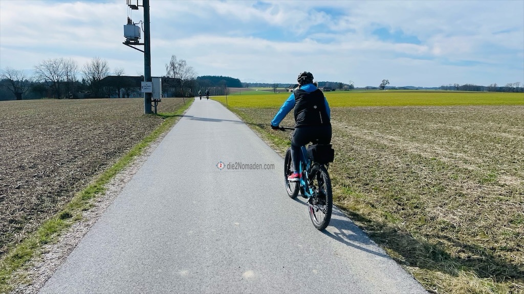 Wir genießen die Wege abseits des Individualverkehrs, großteils auf Asphalt, aber auch auf Schotter-, Wiesen- und Feldwegen. Dass es dabei durch die eine oder andere „Matschepfütze“ geht, wie unsere kleinen Enkerl es benennen, muss in Kauf genommen werden.