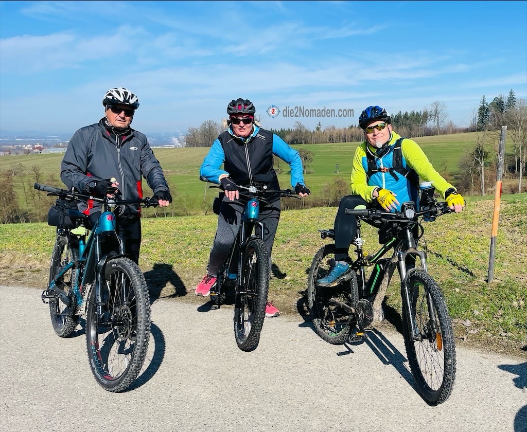 Einige der „Bike-Vögel“ haben heute das erste Mal ein eBike unter dem Hintern und staunen über die Leichtigkeit, mit der sich nun Steigungen und auch Entfernungen meistern lassen. Auch wenn es bei manchen Steigungen, die es auch in Linz-Land gibt, ganz schön zu strampeln ist und die Herren es sich zum Ziel gesetzt haben, nur mit wenig Unterstützung die Bergerl zu erklimmen.
