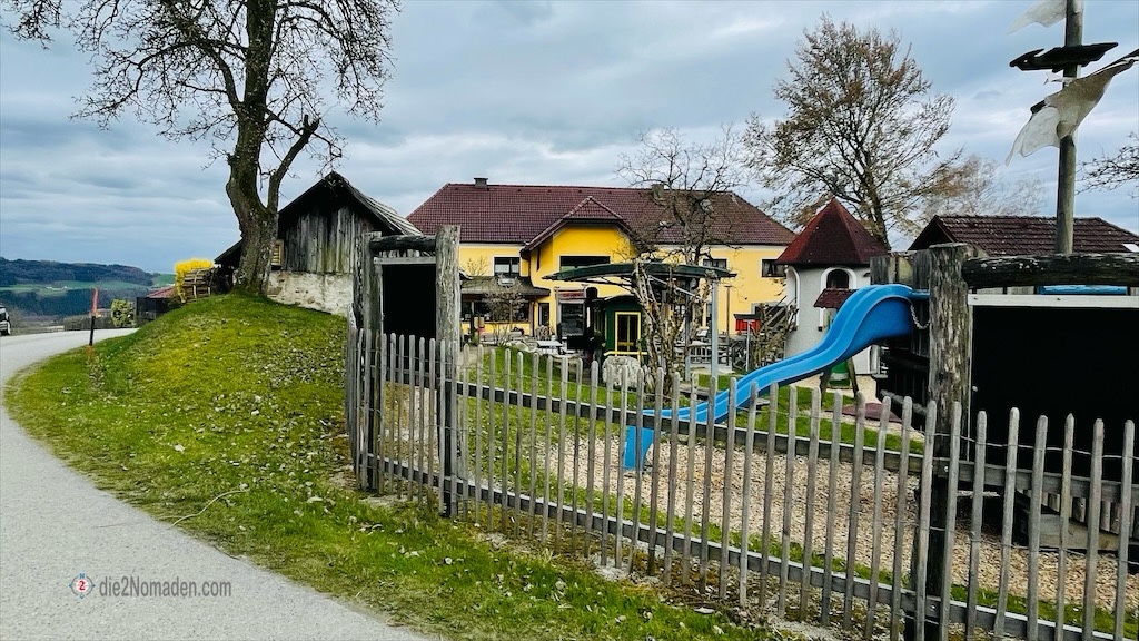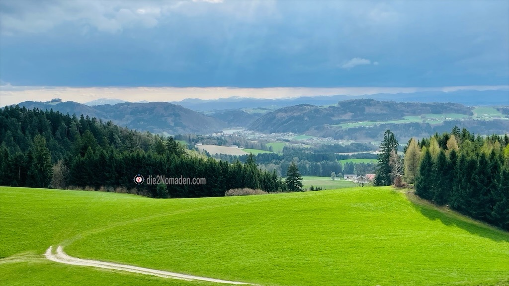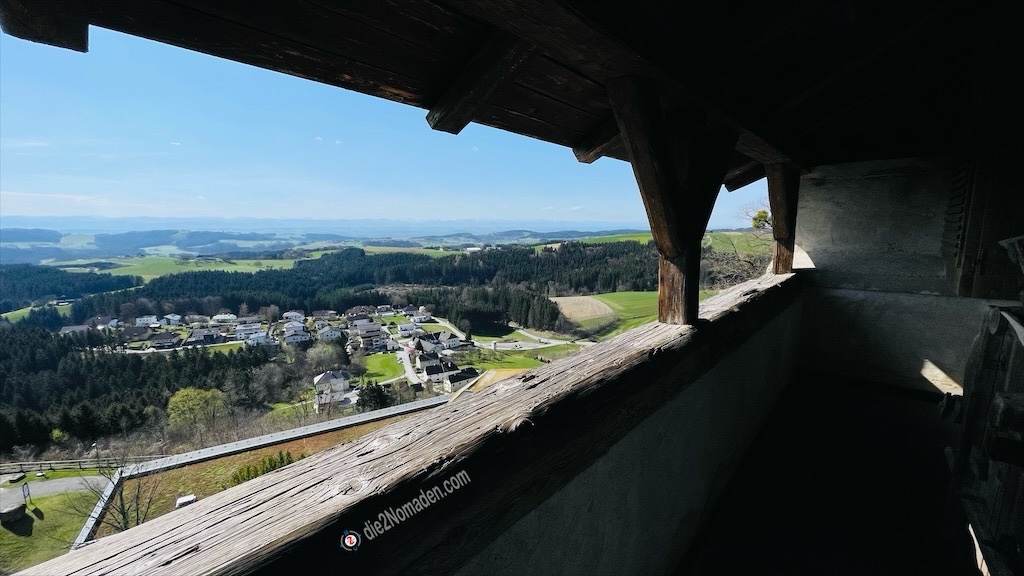 Wir nehmen die ehemalige Zugbrücke, erkunden den Burghof und besichtigen den Aussichtsturm, für den zwecks Erhaltungskosten pro Person € 1,50 kassiert werden. Der Ausblick von oben ist genial und lässt uns heute bei super Fernsicht die Berge der Alpen erkennen und weit ins Mühlviertel sehen. Einige Aufnahmen später sind wir wieder im Burghof und wenden uns nun nordwestlich, dem Ort Bad Kreuzen zu.