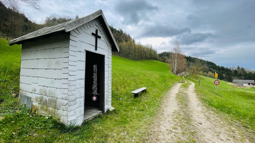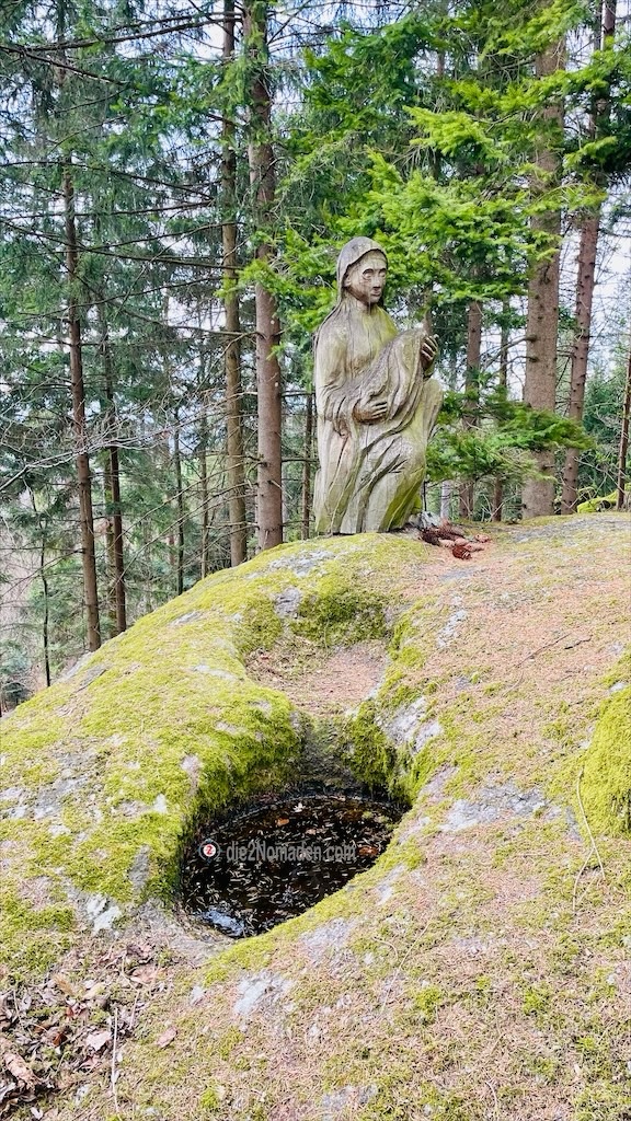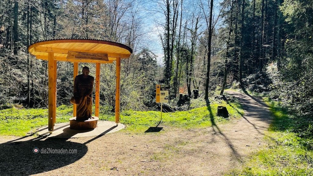 Bei Kilomter 1,3, bei der Statue von Sebastian Kneipp, verlassen wir kurz die Schlucht und wenden uns der Burg Kreuzen zu.