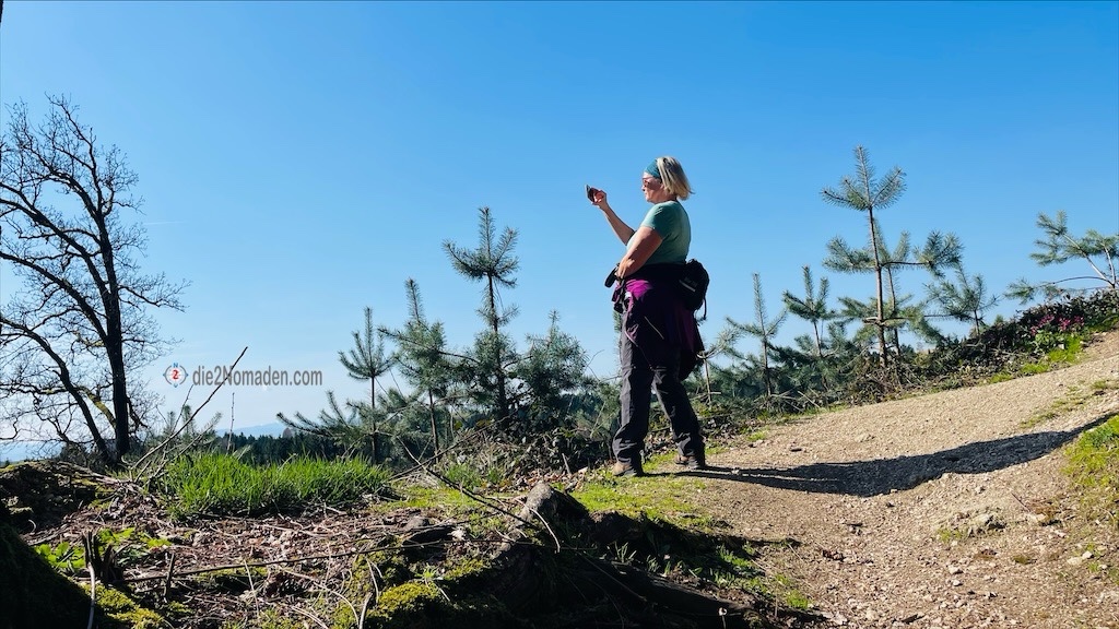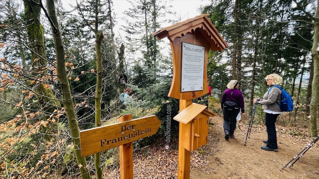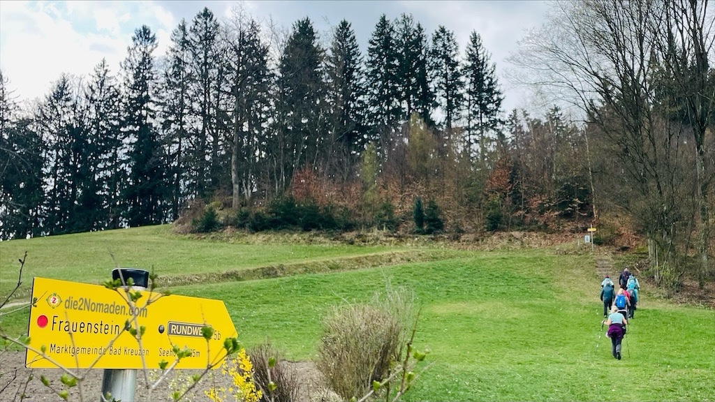 Der plötzlich auftretende Wind und die aufziehende Bewölkung lässt uns schlagartig an die Wettervorhersage denken. Wir beschleunigen unser Tempo und erreichen eine Anhöhe, treffen auf den Großsteinerhof, wenden uns nun links in südlicher Richtung dem Frauenstein zu, den wir kurze Zeit später erreichen.