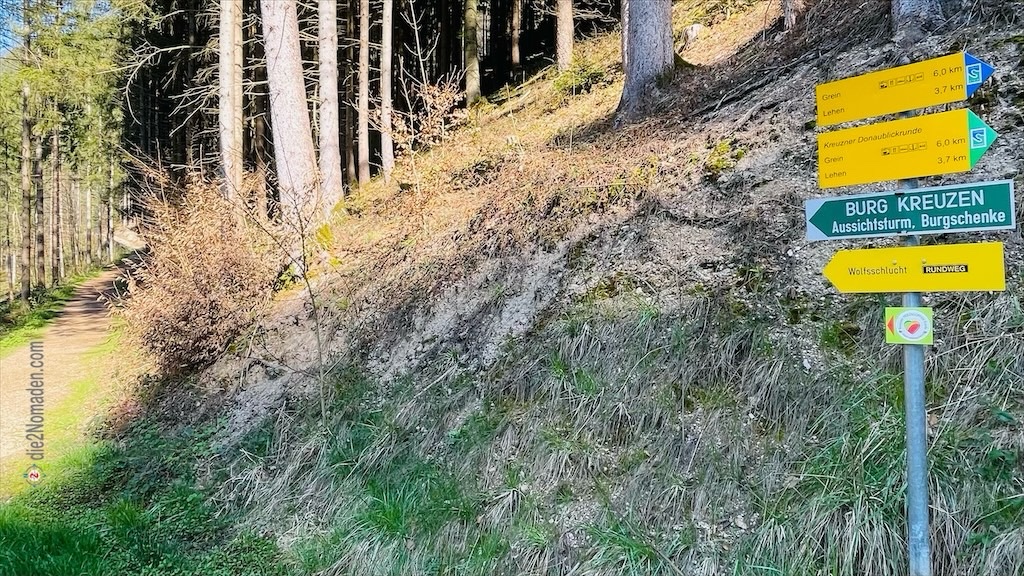 BAD KREUZEN. Die Fahrt geht bis Asten auf der A1, weiter über die B1 nach Ennsdorf, um anschließend bei Mauthausen die Donau zu überqueren. Die B3 bringt uns dann gemütlich nach Grein, wo wir links nach Bad Kreuzen abbiegen und nach etwa 45 min. Autofahrt den Parkplatz in Neuaigen, dem Eingang zur Wolfsschlucht erreichen.