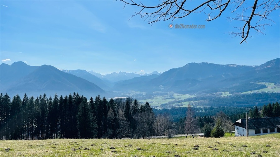 Der Ausblick zurück auf Viechtwang und die sich auflösende Nebelsuppe sieht wunderbar aus und wir genießen die kurze Zeit.