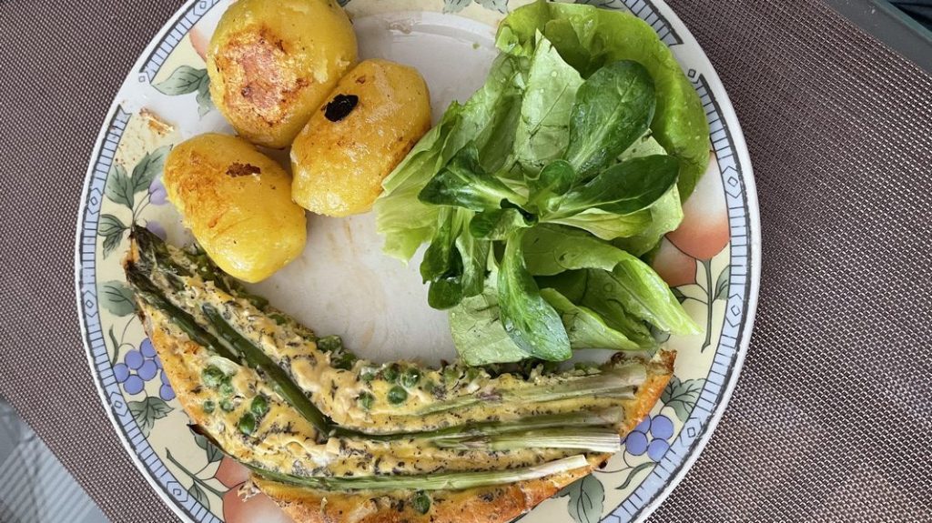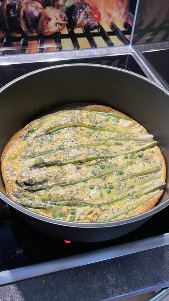 Auch anderes Gemüse kann außerhalb der Spargelsaison für die Frittata verwendet werden, z.B.: frischer Spinat, Brokkoli, etc.