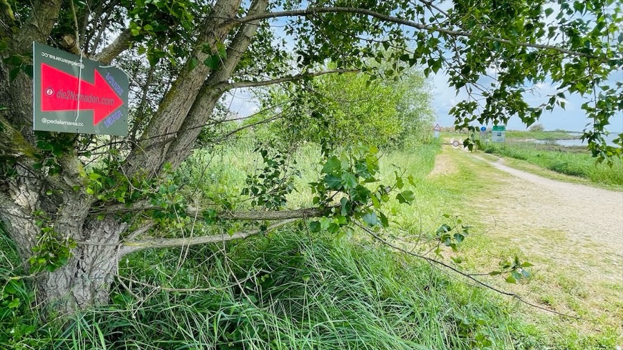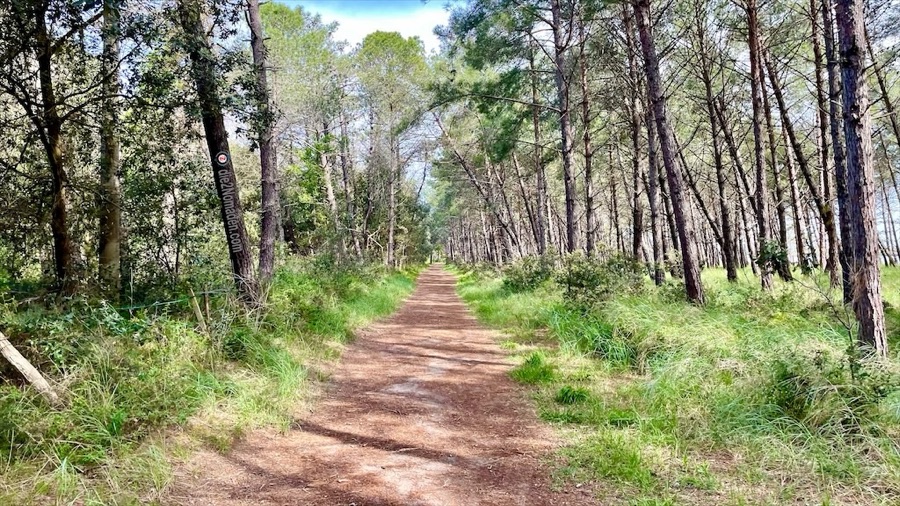Alles gepackt und schon geht es los. Kurzärmelig mit einem leichten Gilet – erstmal. Das erste Stück des Weges führt uns durch einen Pinienwald und hinaus aus dem Campingplatz auf einem super tollen Radweg (Danke Italia) hinein in die Lagunenlandschaft.