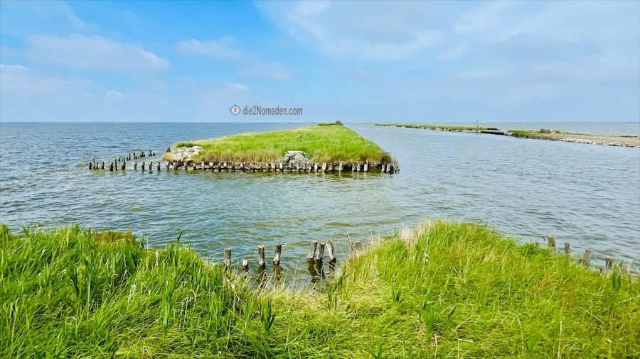Da wir einer Radkarte folgen, die wir offline heruntergeladen haben, geht es flott weiter. Von einem Highlight zum nächsten. Die Radwege sind wirklich top, nur ein Stück von ca. 10 km fahren wir auf einer Straße, die allerdings fast nicht befahren ist, auch immer direkt am See entlang. Dann biegen wir wieder ab auf einen Damm und entdecken ein kleines Häuschen auf einer Insel, dass nun ein Museum darstellt. Die Gelsen beschließen, draußen auf uns zu warten und wir bewundern die ausgestellten Fotografien und das Mobiliar von anno dazumal.