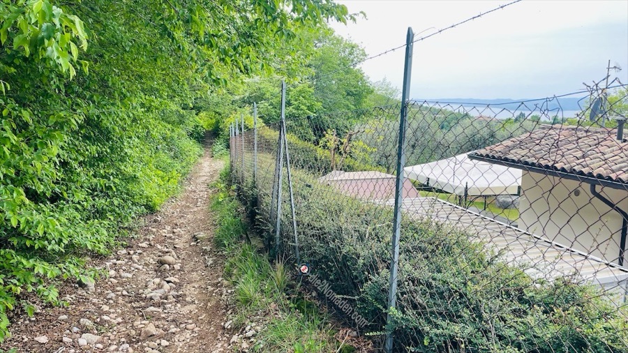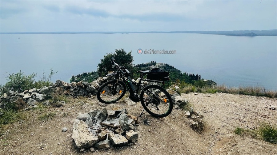 Also ein kurzes Stück retour und schon beginnt die eigentliche Mountainbike-Tour mit einem kurzen, aber knackigen Anstieg. Der Weg führt westlich am Hügel entlang und erreiche ziemlich bald die Aussicht auf Torri del Benaco.