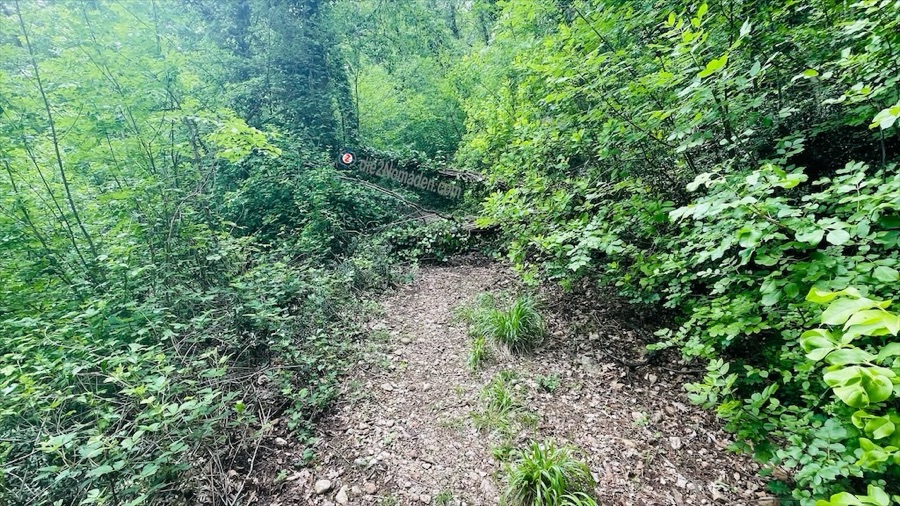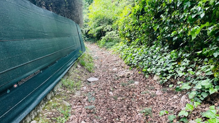 An mehreren Stellen ist, aufgrund der Steilheit des Geländes bzw. der Beschaffenheit des Weges (Unmengen faustgroßer Steine, schräge rutschige Platten, extreme Hohlrinnen, Baumstämme über dem Weg, usw), das Bike zu schieben.