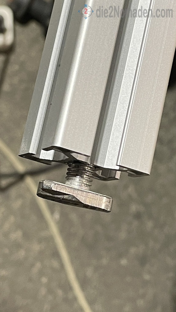 Nicht nur dabei war die 8mm-Nut sehr hilfreich. In diese Nut kann man wirklich alles mit Hammermuttern und passenden Schrauben befestigen.