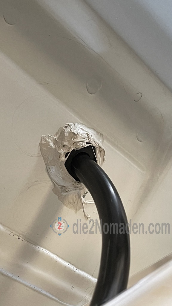 Direkt über unserem Schaltschrank haben wir eine 2. Dachdurchführung verklebt.