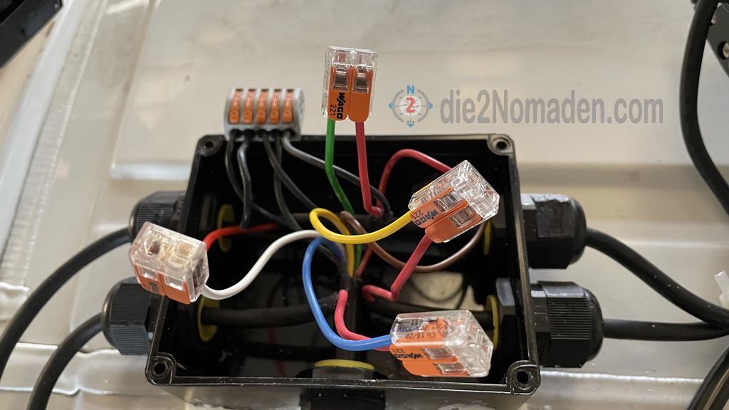 Die Kabel der Beleuchtung am Heck musste noch mittels wasserdichte Kabelverbinder verlängert werden.