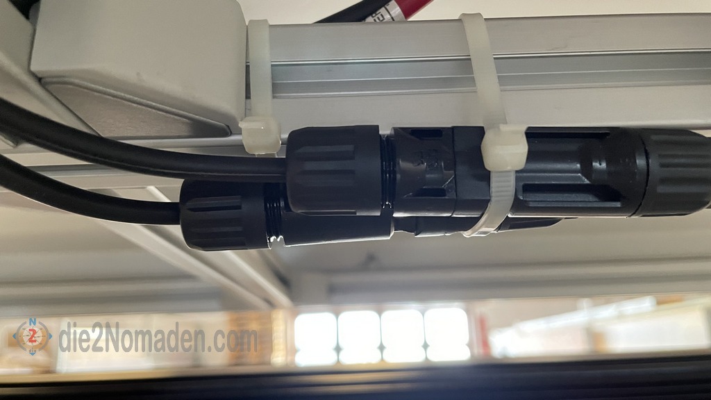 Als Abschluss wurden nun nur noch die Kabel am Dach, die Anschlüsse des Paneels mit der Verlängerung, über MC4-Stecker verbunden.