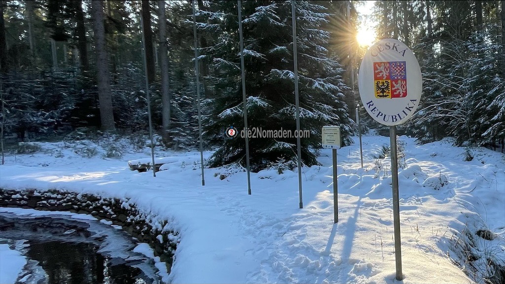 Naja … nach diesem ärgerlichen Vorfall folgen wir ein kurzes Stück dem Schwemmkanal, biegen links ab und erreichen kurze Zeit später die Landesstraße, die die Autofahrer nach Tschechien bringt.