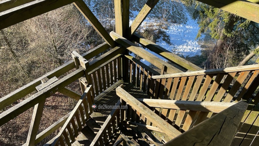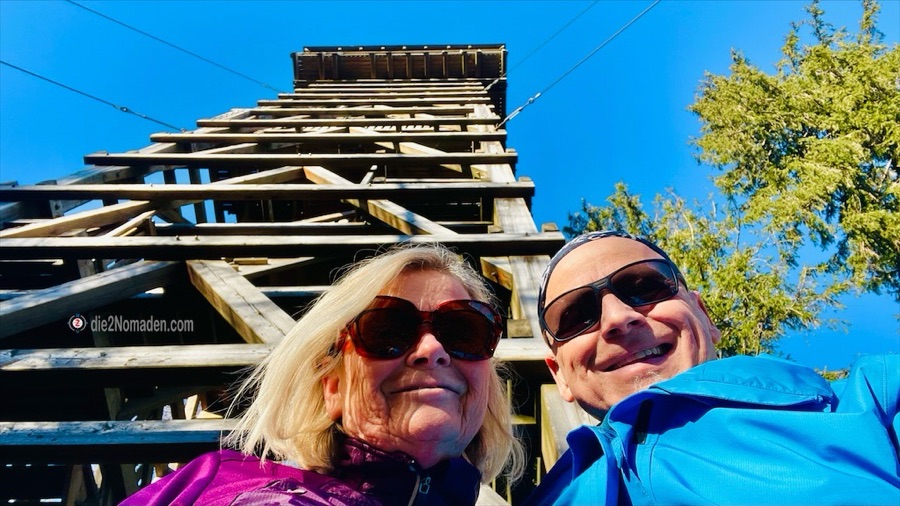 Wir erreichen die Warte und erklimmen dann die 130 Stufen der Aussichtswarte. Nein, ich habe nicht gezählt, ich war froh, oben noch etwas atmen zu können, das hat Andre erledigt. Also – nach 130 für mich endlose Stufen (i kaun nimmaaaa) erreichen wir die Aussichtsplattform. Hach, schon sind die Stufen vergessen und wir genießen die herrliche Aussicht.