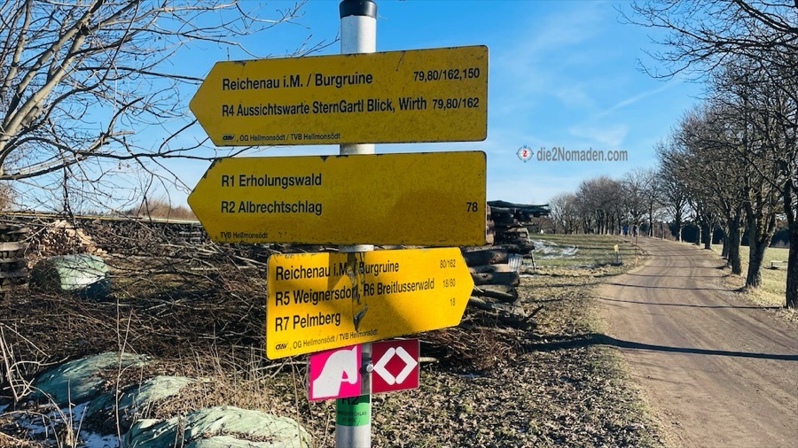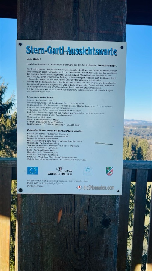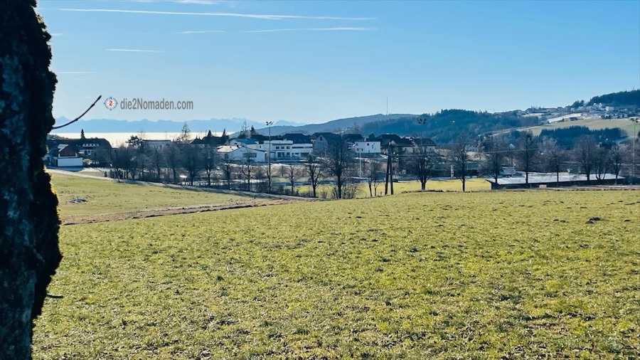 Wir parken auf einem öffentlichen Parkplatz im Ort und wandern los Richtung Aussichtswarte Sterngartl-Blick, unserem heutigen Ziel. Erst folgen wir mit doch einigen anderen Sonnensuchenden einem Stück des Planetweges in Hellmonsödt, den wir aber nach einiger Zeit verlassen und nun alleine unterwegs sind.