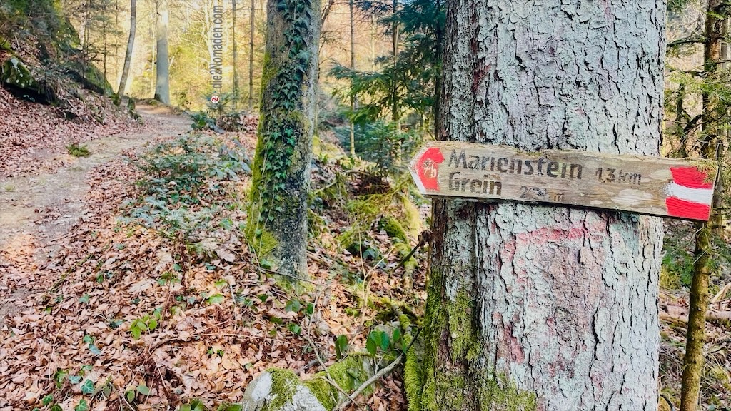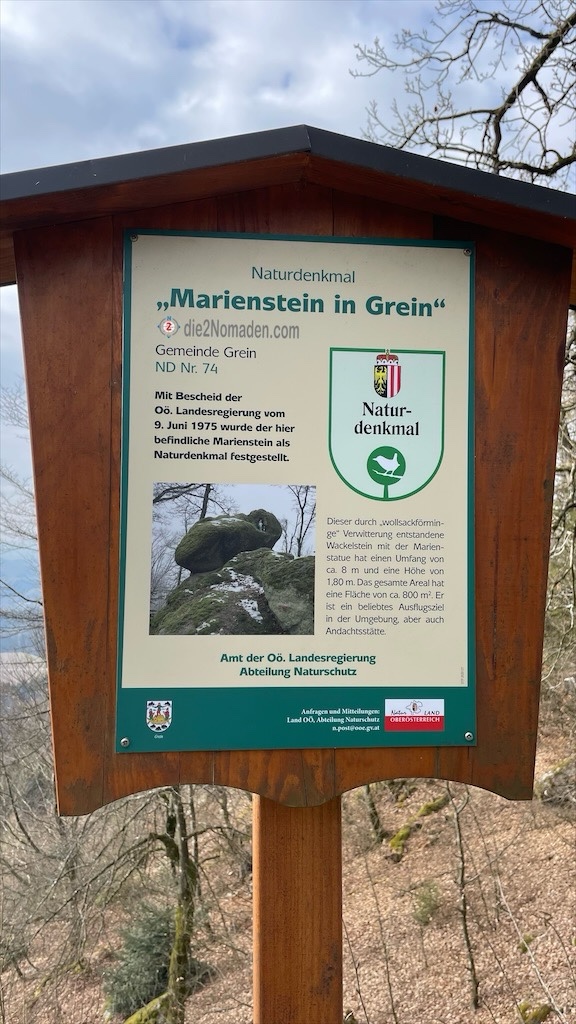 Die Sonne scheint sogar bei uns zuhause schon morgens und so suchen wir eine eher anspruchslose, kurze Wanderung, da die Bewölkung nachmittags zunehmen soll. Der Marienstein in Grein ist unser heutiges Ziel und so gehts auch schon los.