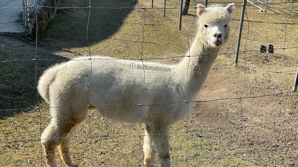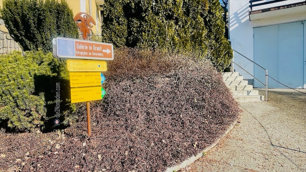 Die Galerie in Granit am Kalvarienberg mit der schönen Kapelle zeigt in Granit gemeißelte Nachrichten (ursprünglich vorchristlicher Kulturen), die ein Mostviertler Bildhauer in einfacher Symbolsprache für die Nachwelt festgehalten hat. Wir schlendern herum und wandern dann weiter durch den Ort hinauf, bis wir einen Bauernhof erreichen, wo sich der Weg gabelt. Hier treffen wir noch auf entzückende Alpakas, die uns neugierig beäugen – genauso wie wir sie 😉